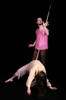 North of the Garden of the Hesperides is a performance combining contemporary dance and circus, exploring the relationship between humans and plants. The piece brings plants to movement and invites the audience to experience their quiet world.